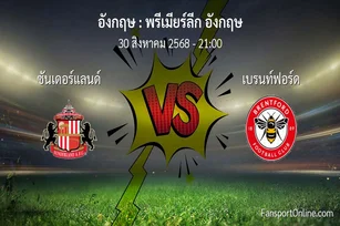 วิเคราะห์บอล พรีเมียร์ลีก อังกฤษ ระหว่าง ซันเดอร์แลนด์ พบ เบรนท์ฟอร์ด (30 สิงหาคม 2568)