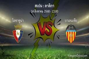 วิเคราะห์บอล ลาลิกา ระหว่าง โอซาซูน่า พบ บาเลนเซีย (24 สิงหาคม 2568)