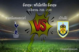วิเคราะห์บอล พรีเมียร์ลีก อังกฤษ ระหว่าง ทอตนัมฮอตสเปอร์ พบ เบิร์นลีย์ (16 สิงหาคม 2568)